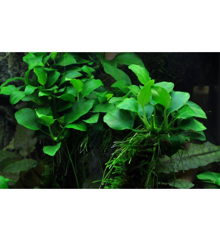Είναι μικρότερη από την anoubia nana αλλά τα φύλλα της παραμένουν σκληρά και σκούρο πράσινο χρώμα.